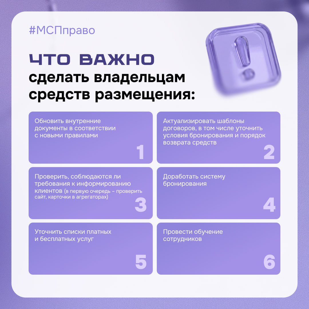 Даже при наличии отлаженных процессов, критически важно убедиться в их соответствии новым нормам. Это включает проверку документации, порядка заселения, мер безопасности и протоколов взаимодействия с гостями. В карточках — короткий чек-лист для владельцев и управляющих средств размещения, чтобы быстро оценить, всё ли учтено.